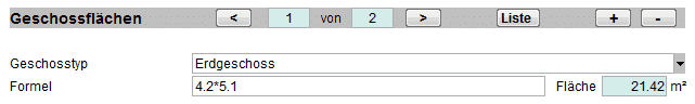 - Liste gibt eine Ergebnisliste der Geschossflächen zum aktuellen Datensatz aus